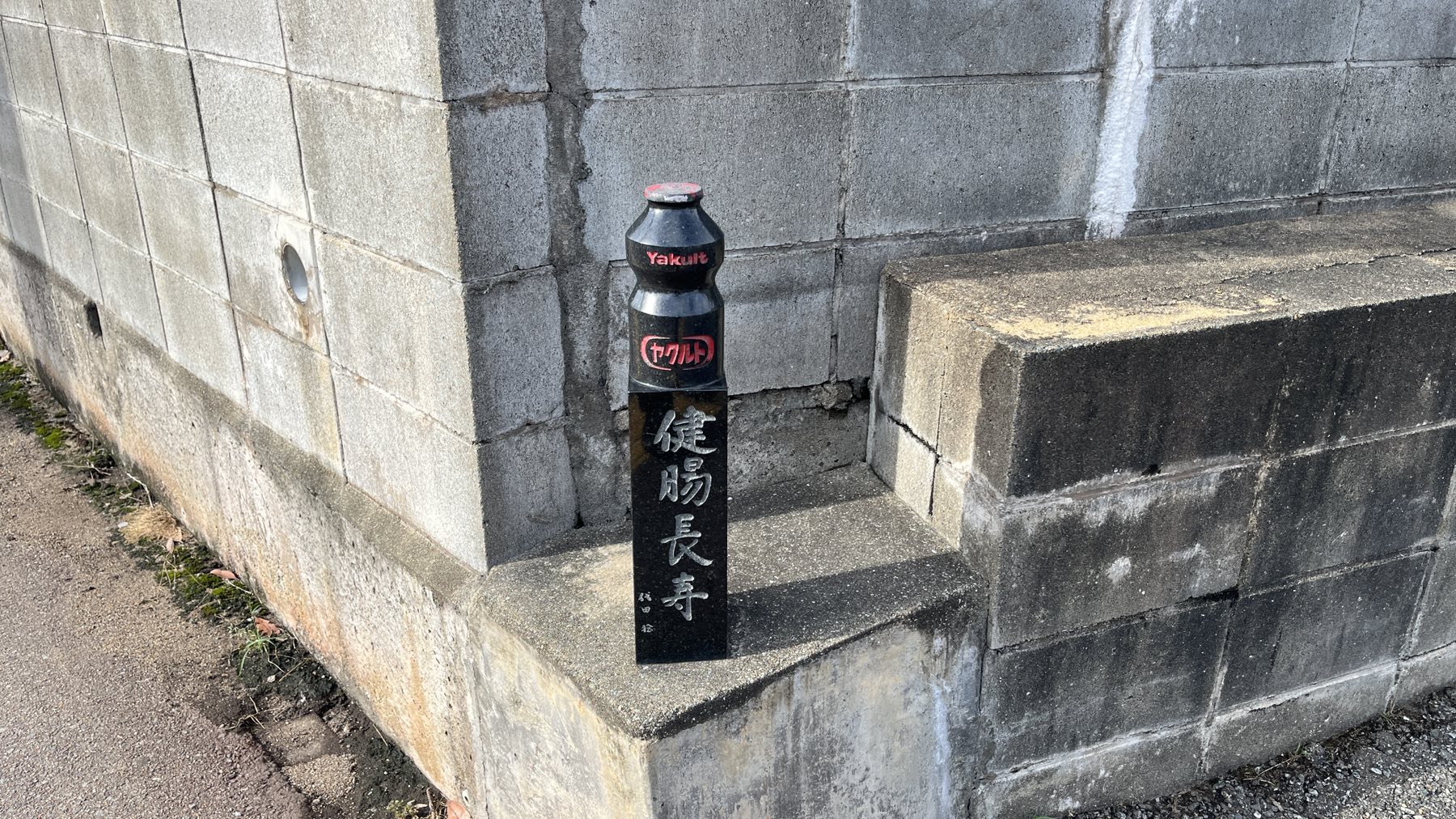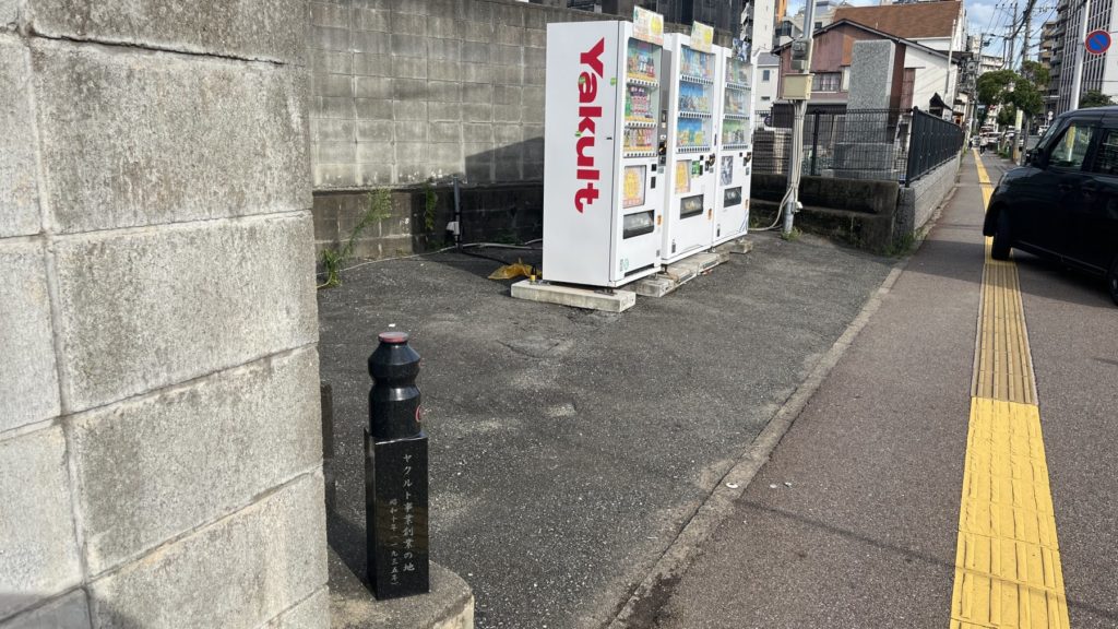あと、ヤクルト発祥の地には、ヤクルト容器の形をした記念碑があります。