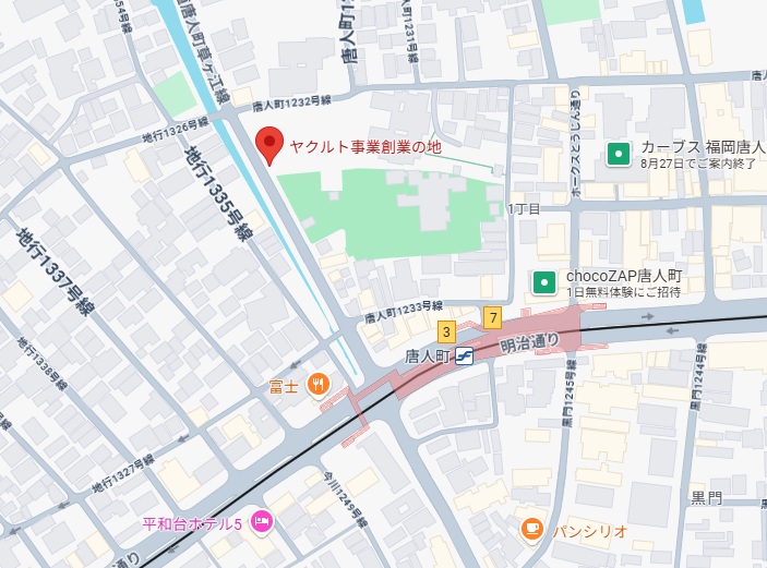 *ヤクルトは福岡県福岡市中央区唐人町が発祥の地です。
