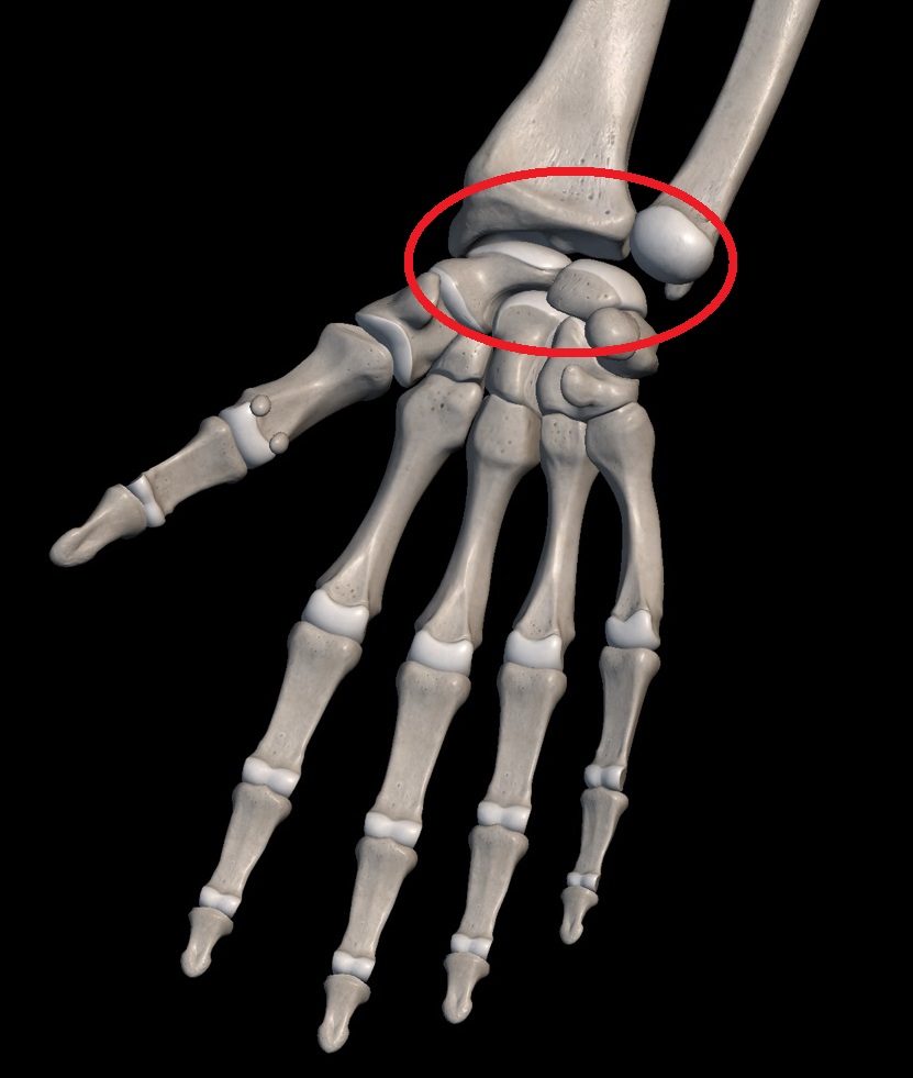 手のひらの骨(手根骨)と腕の骨(橈骨)の詰まりです。